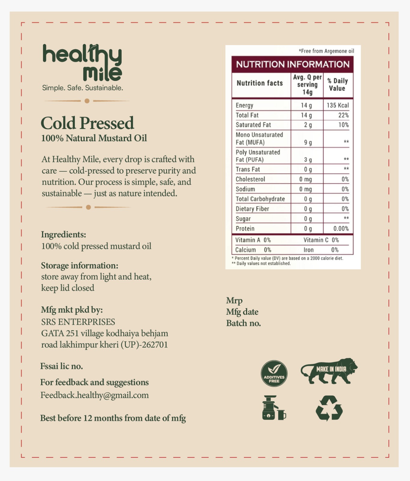 Cold-pressed from high-quality mustard seeds, our mustard oil delivers rich aroma, strong flavor, and natural nutrients. Perfect for cooking, frying, and traditional recipes.